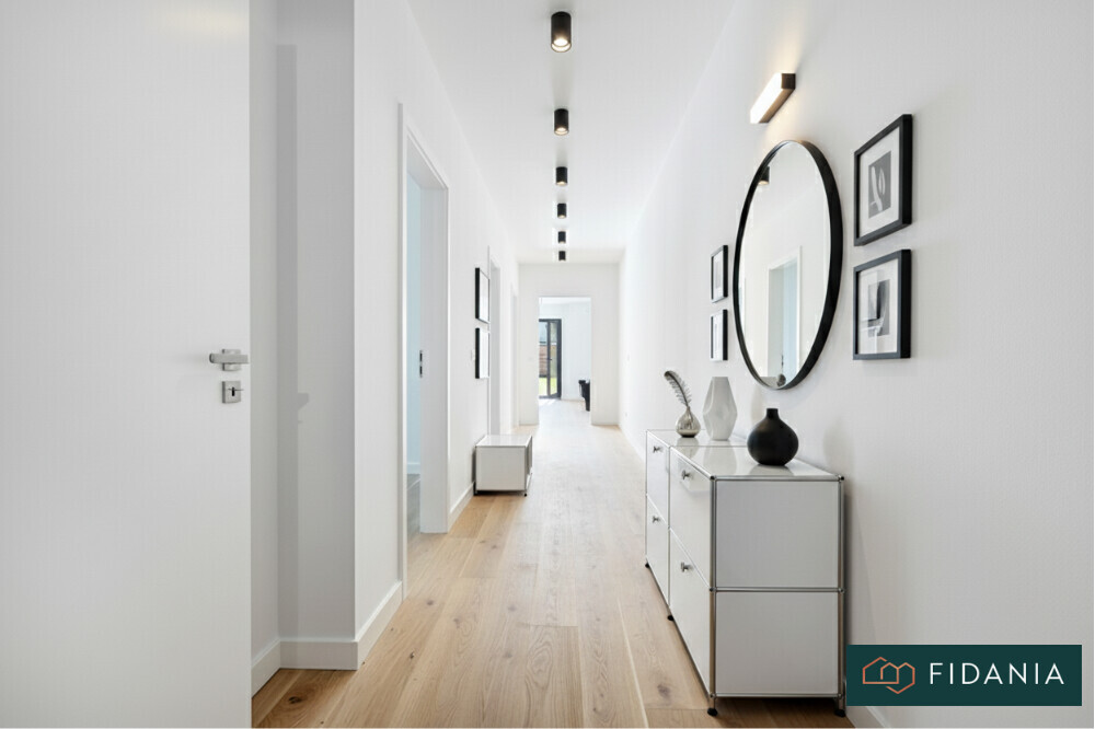 Das Gebäude wird im KfW 40-Standard errichtet und erfüllt damit höchste Anforderungen an Energieeinsparung und Klimaschutz. Beheizung mittels Erdwärme in Kombination mit Fußbodenheizung, dreifach verglaste Wärmeschutzfenster, eine effiziente Lüftungsanlage mit Wärmerückgewinnung sowie eine hochwertige Gebäudehülle mit mineralischer Dämmung sorgen für minimale Wärmeverluste und niedrige Nebenkosten. Zusätzlich ermöglichen Photovoltaikflächen eine zukünftige Ergänzung zur Eigenstromerzeugung.